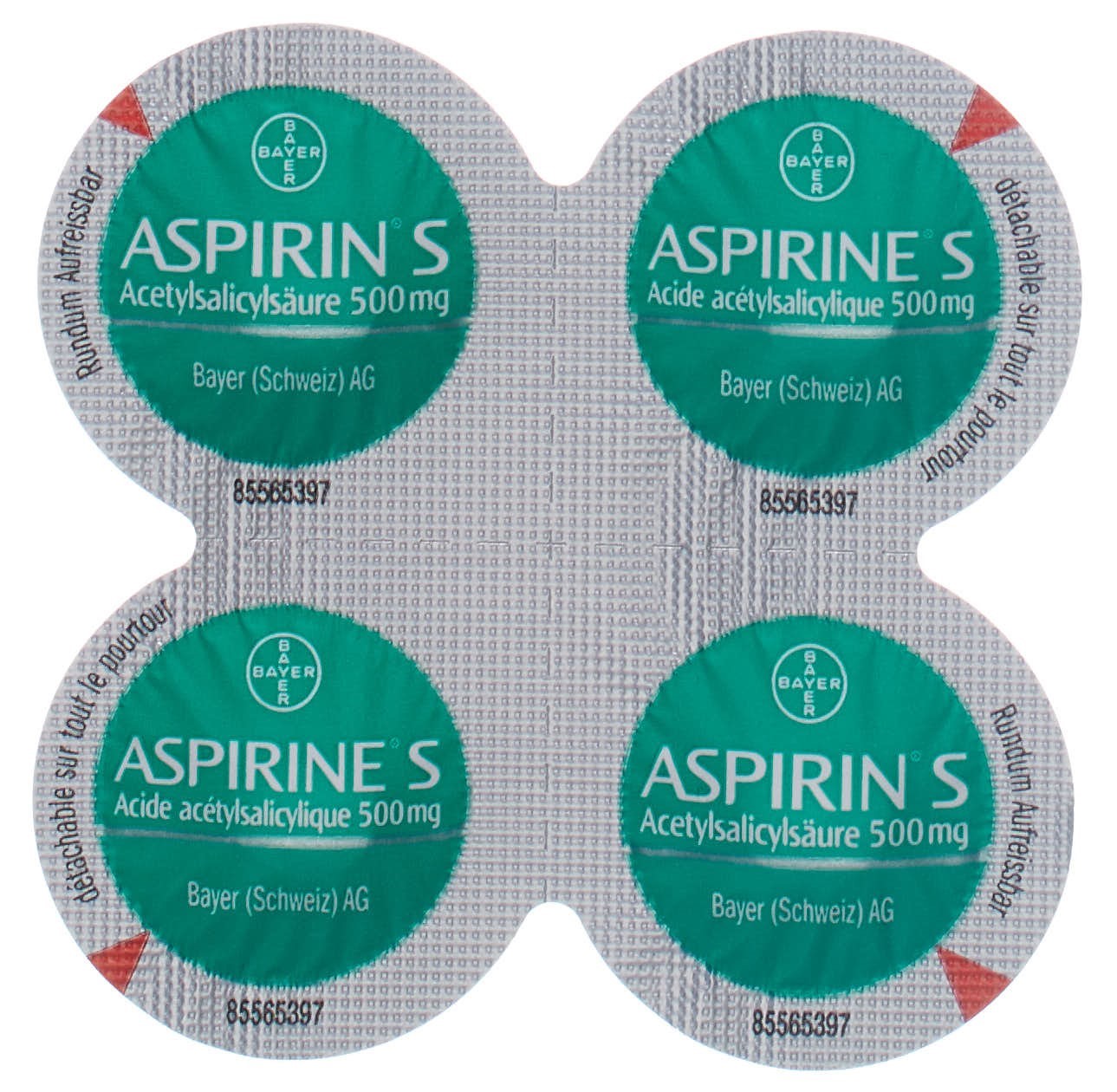 Aspirin S enthält den Wirkstoff Acetylsalicylsäure. Dieser hat schmerzlindernde, fiebersenkende und entzündungshemmende Eigenschaften.