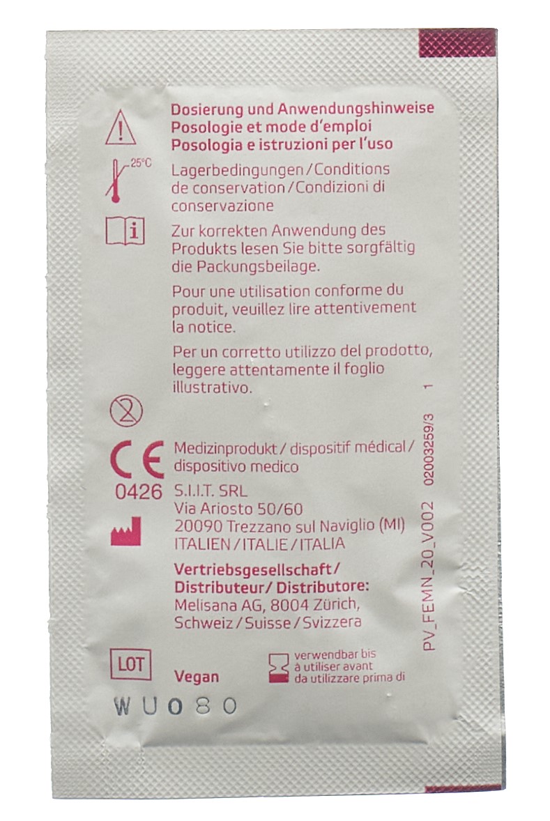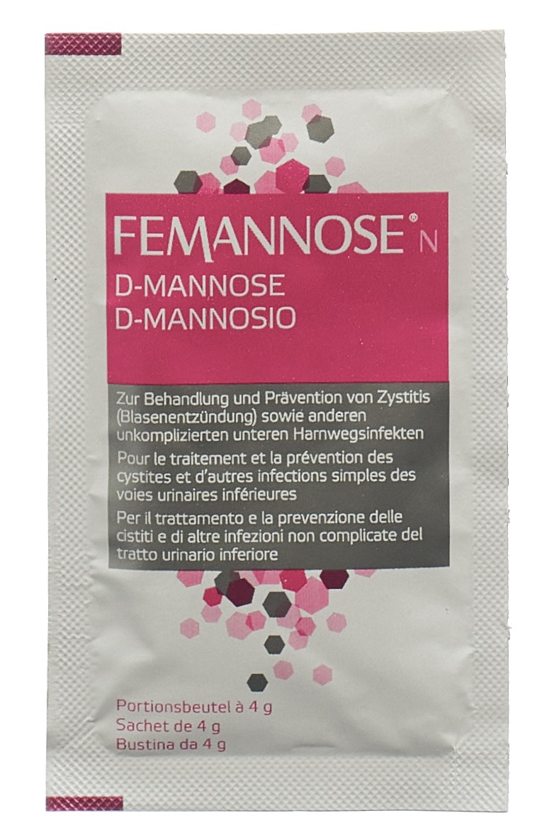 Femannose ist in Pulverform in abgepackten Beuteln erhältlich und hat einen angenehm fruchtigen Geschmack. Das Pulver hat eine sehr hohe Verträglichkeit und kann bei sehr starken Beschwerden ergänzend zu einem Antibiotikum eingenommen werden.