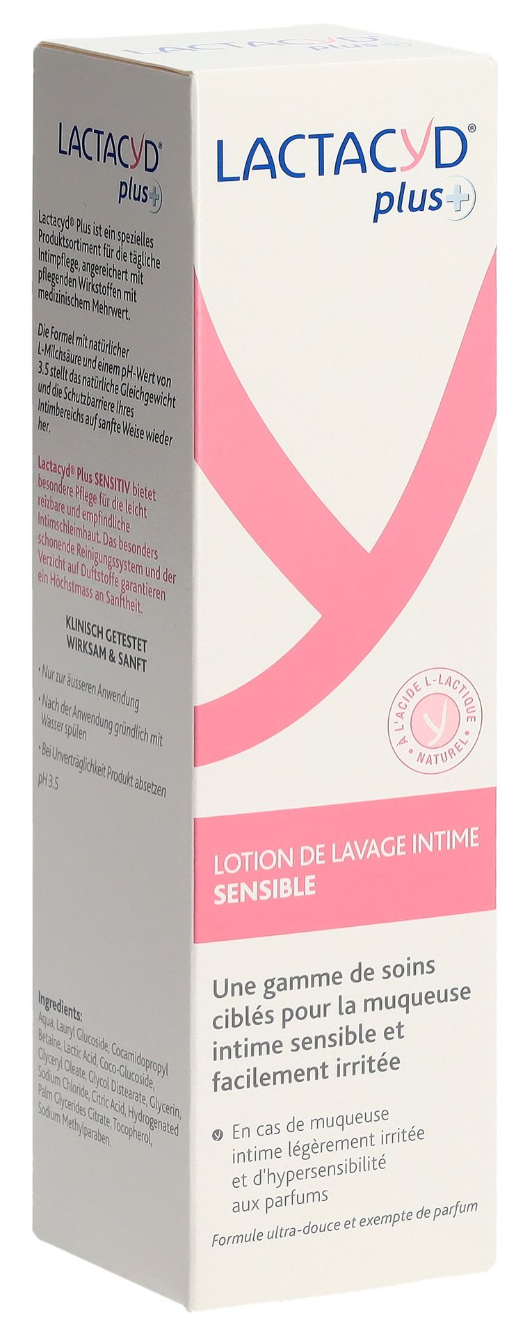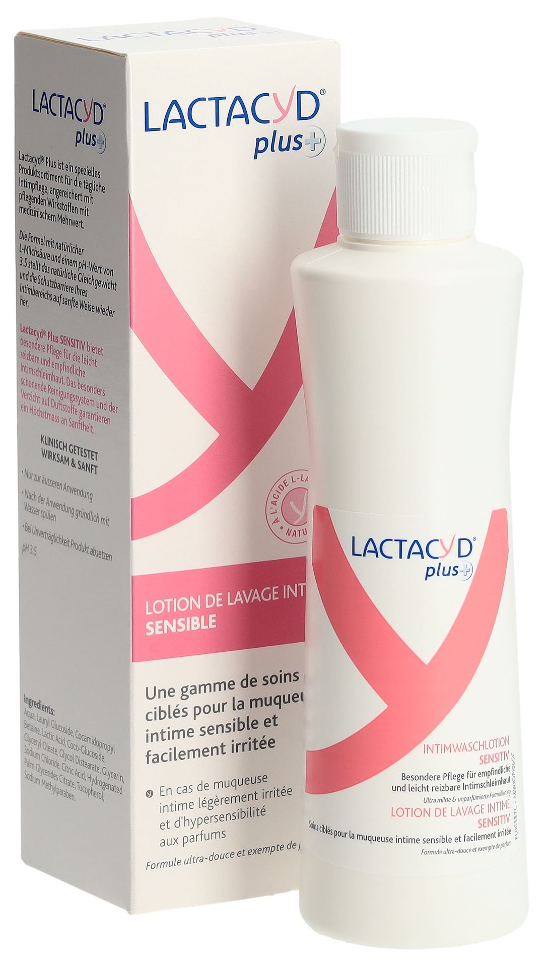 - Lactacyd® Plus Sensitiv bietet besondere Pflege für die leicht reizbare und empfindliche Intimschleimhaut. Das besonders schonende Reinigungssystem und der Verzicht auf Duftstoffe garantieren ein Höchstmass an Sanftheit.