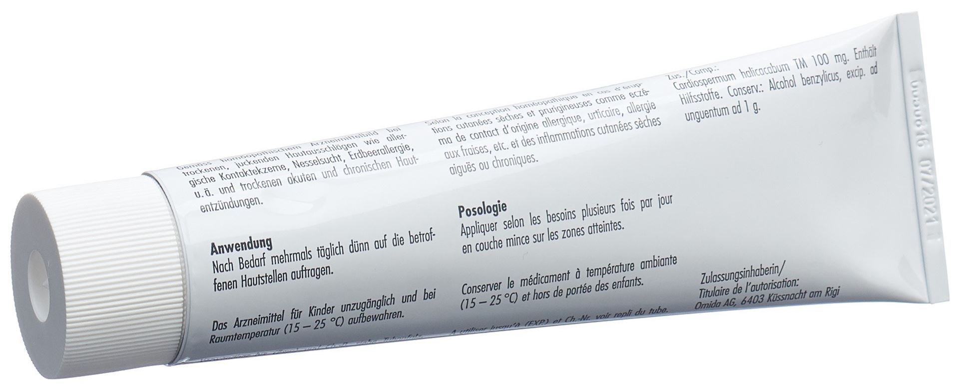 Cardiospermum halicacabum (Ballonpflanze) TM. Dieses Präparat enthält zusätzlich Hilfsstoffe: Benzylalkohol (Konservierungsmittel), Cetylstearylalkohol, dickflüssiges Paraffin, Octyldodecanol, weisses Vaselin, Wasser.