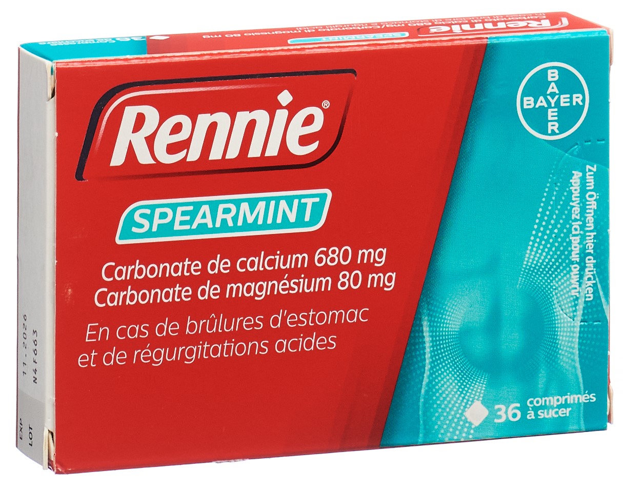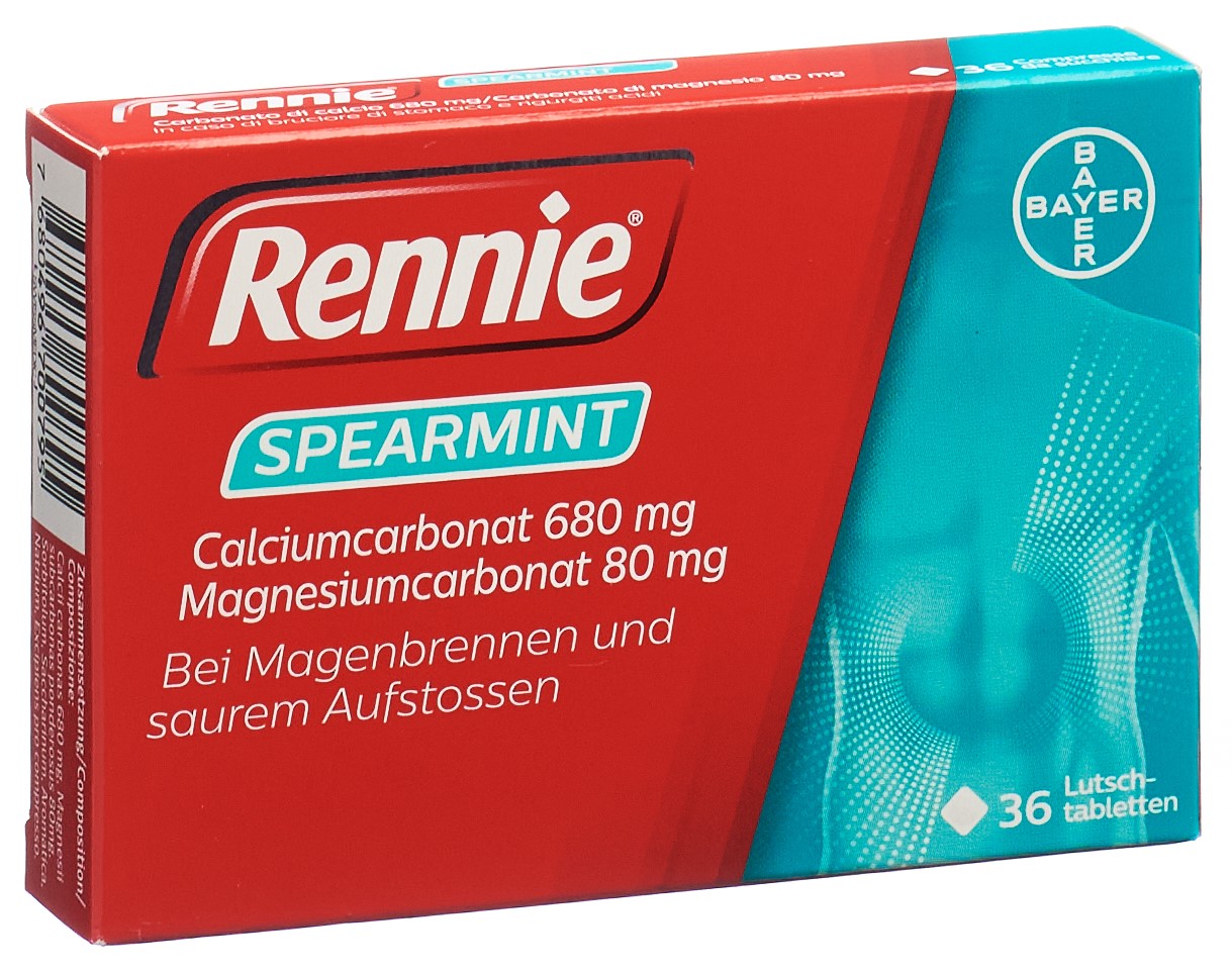 Die Wirkstoffe der Rennie Peppermint und Rennie Spearmint Lutschtabletten – Calciumcarbonat und Magnesiumcarbonat – neutralisieren die Magensäure und lindern die Symptome einer Übersäuerung des Magens wie Magenbrennen und saures Aufstossen.