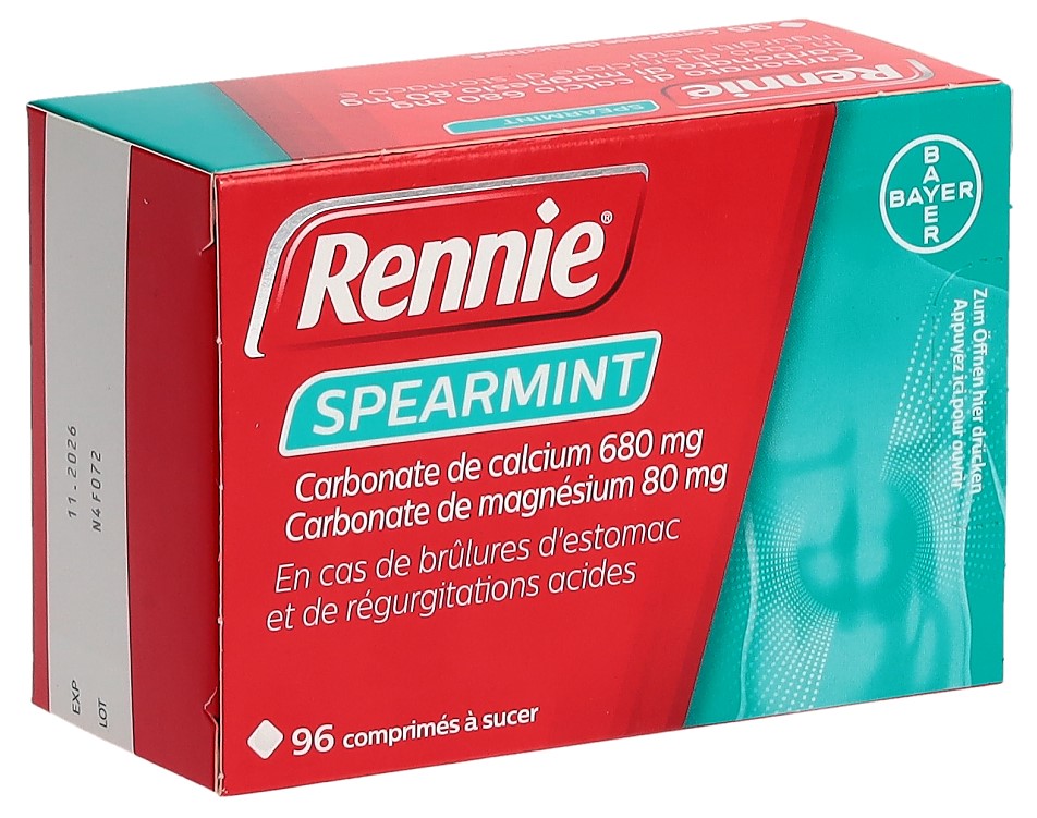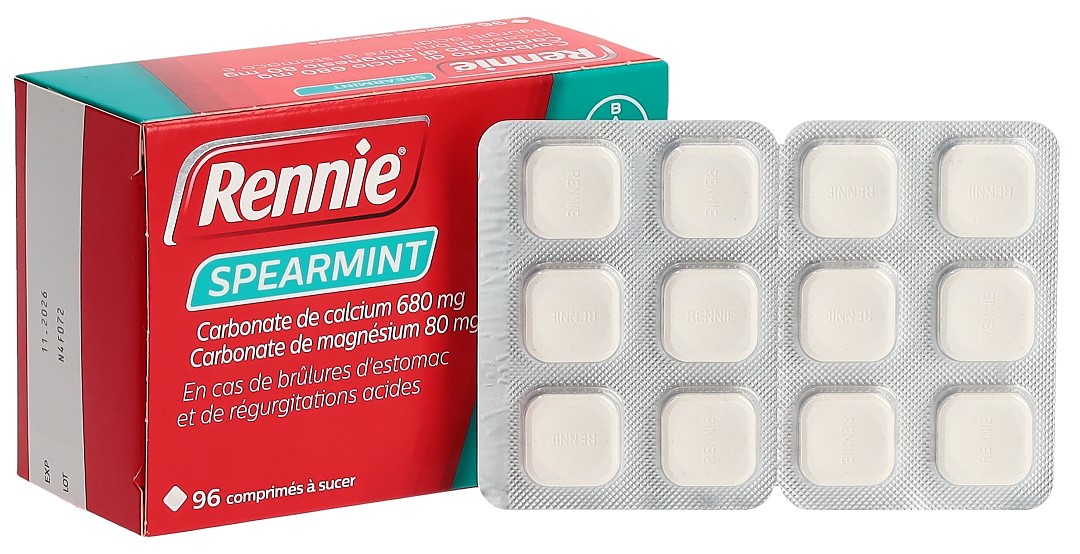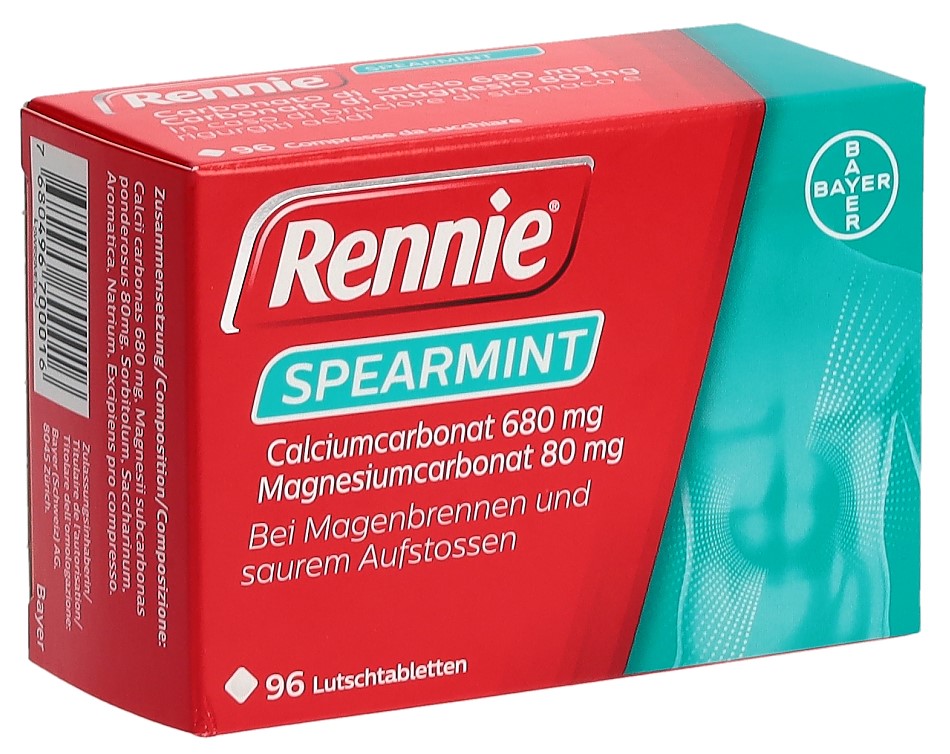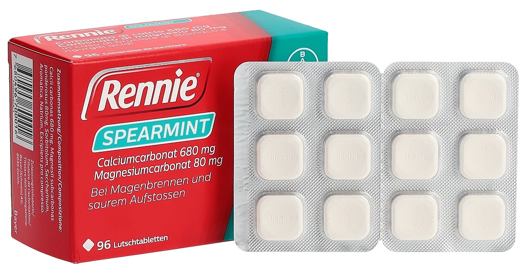 Die Wirkstoffe der Rennie Peppermint und Rennie Spearmint Lutschtabletten – Calciumcarbonat und Magnesiumcarbonat – neutralisieren die Magensäure und lindern die Symptome einer Übersäuerung des Magens wie Magenbrennen und saures Aufstossen.