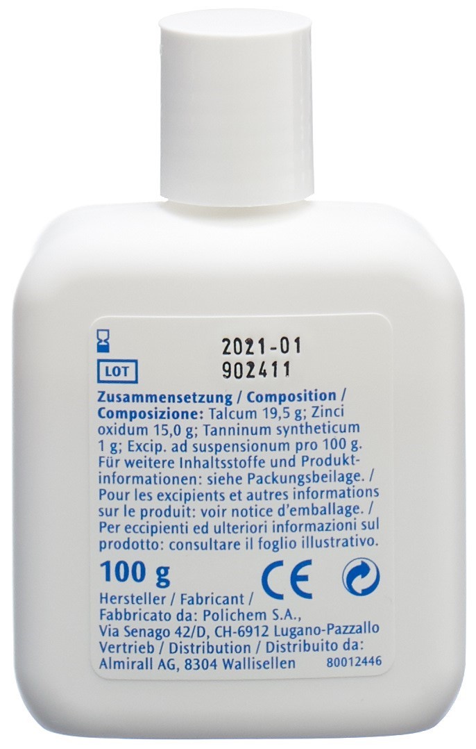 Talkum und Zinkoxid in Tanno-Hermal Lotio unterstützen insbesondere die Austrocknung flüssigkeitsgefüllter Hautbläschen, z.B. bei Windpocken, Lippenherpes (Herpes labialis).