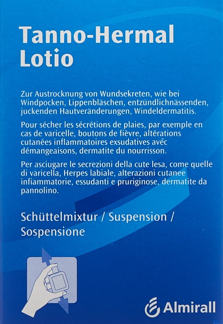Tanno-Hermal Lotio ist ein Medizinprodukt, das vor allem durch die physiko-chemischen, adstringierenden Eigenschaften des enthaltenen synthetischen Gerbstoffs eine austrocknende Wirkung bei nässenden, infizierten Hauterkrankungen hat. Durch den enthaltenen synthetischen Gerbstoff und die Feststoffe Zinkoxid und Talkum wird Wundsekret gebunden und ein schützender Film über den krankhaft veränderten Hautarealen ausgebildet. Durch die Austrocknung entzündlich-nässender Hautbereiche und die damit verbundene Schorfbildung wird Bakterien und Pilzen der Nährboden entzogen und einer weiteren Ausbreitung der Hautinfektion entgegen gewirkt. Einen Nebeneffekt der Austrocknung stellt die spürbare Juckreizlinderung und Reizmilderung durch den Schutzfilm auf den betroffenen Hautbereichen dar. Tanno-Hermal Lotio schützt auf diese Weise die gereizte Haut, damit diese sich ungestört erneuern kann.