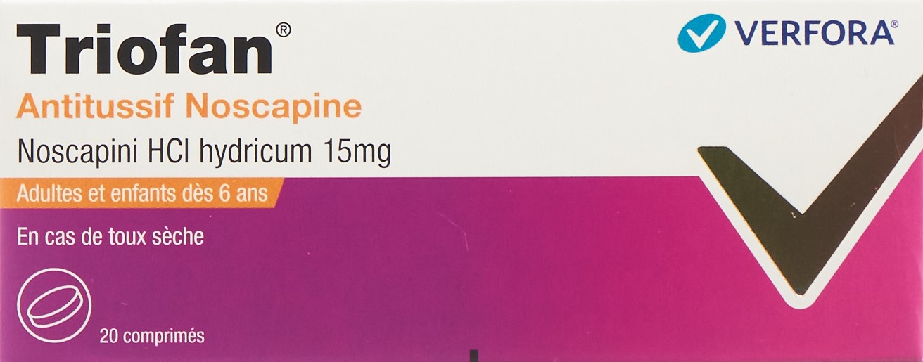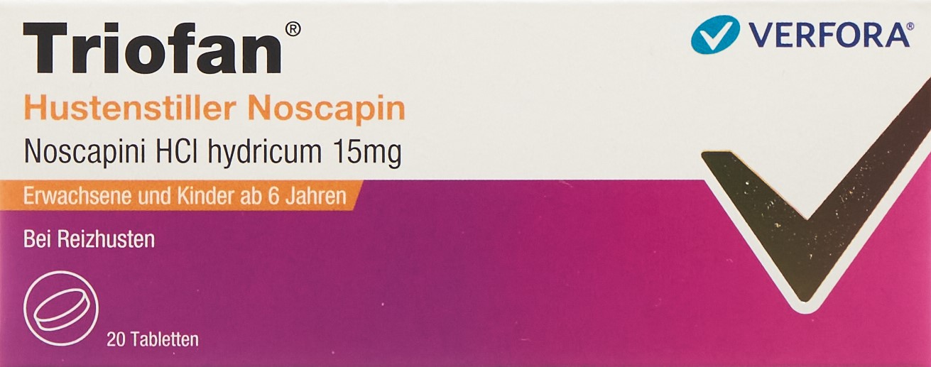 Triofan Hustenstiller Noscapin enthält Noscapinhydrochlorid-Monohydrat. Noscapin ist ein Hustenstiller. Triofan Hustenstiller Noscapin wird zur Beruhigung von trockenem Husten und Reizhusten eingesetzt. Wenn der Husten von starker Schleimproduktion oder von Auswurf begleitet wird, ist Noscapin nicht geeignet und Sie sollten anstelle von Triofan Hustenstiller Noscapin einen schleimlösenden Wirkstoff (Expektorans) verwenden. Wenn sich Ihr Zustand nach 7 Tagen nicht bessert oder sich verschlechtert, wenden Sie sich an Ihren Arzt, Apotheker oder Drogisten bzw. Ihre Ärztin, Apothekerin oder Drogistin.