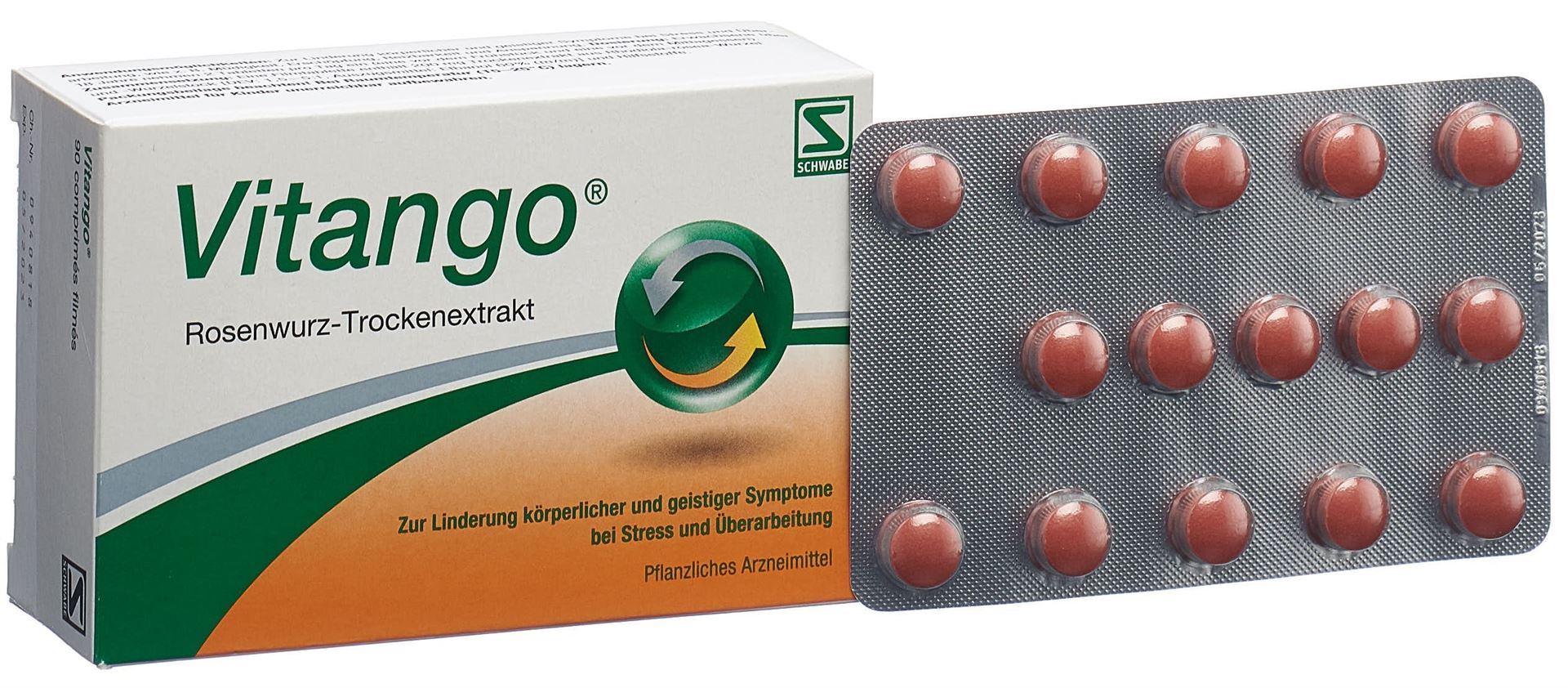 Vitango ist ein pflanzliches Arzneimittel und enthält einen Trockenextrakt aus Rosenwurz-Wurzel und -Wurzelstock.